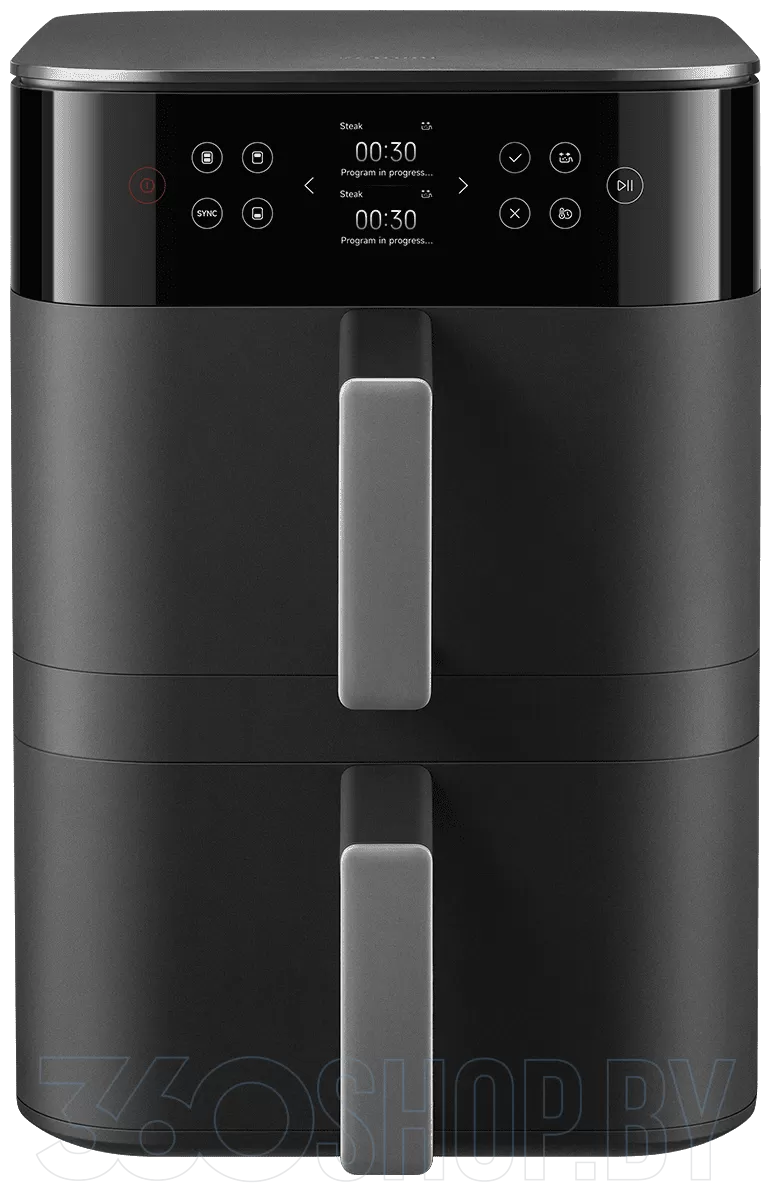 Управление осуществляется через большой цветной HD-дисплей, который позволяет настраивать каждую корзину отдельно. Пользователь может регулировать температуру, время и режимы приготовления для верхнего и нижнего уровней. Функция синхронизации обеспечивает одновременное завершение приготовления даже при разных настройках, что делает использование устройства максимально удобным. При этом цена Xiaomi Smart Double Stack Air Fryer 12L (MAF-DS1201) соответствует уровню оснащения и функциональности.