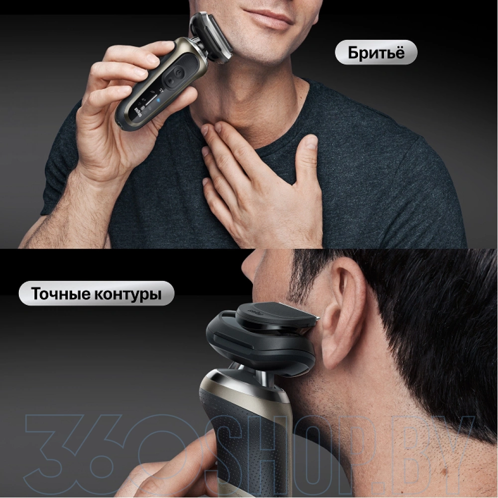 - Система 360° Flex и 3 режущих элемента — точное повторение контуров лица.