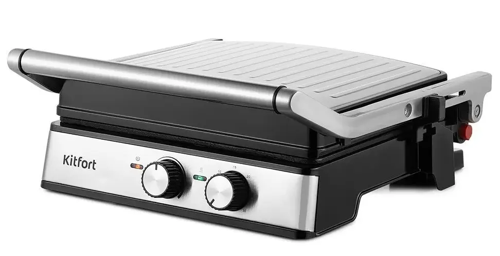 Kitfort KT-3601 оснащён механическим управлением, которое отличается надёжностью и простотой настройки. Лоток для сбора жира помогает поддерживать чистоту во время приготовления, а компактные размеры позволяют удобно разместить устройство на кухне. Нескользящие ножки обеспечивают устойчивость на поверхности, а термоизолированная ручка делает эксплуатацию безопасной.