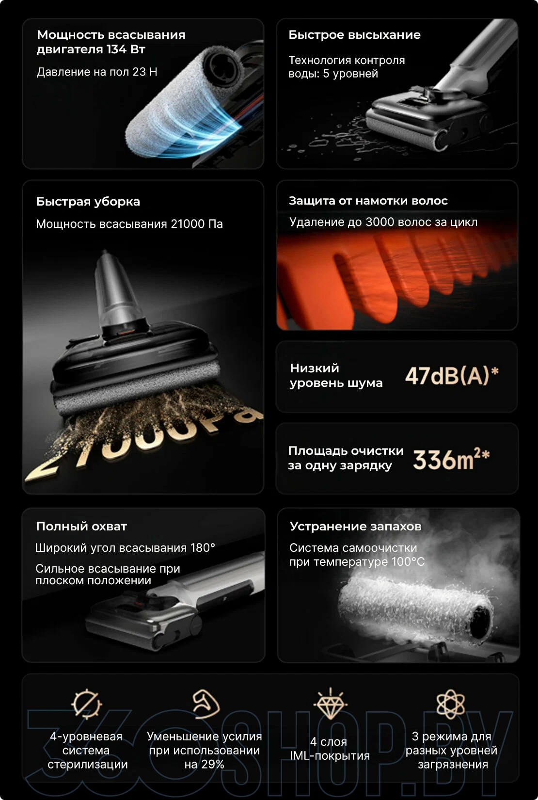 Моющий вертикальный пылесос Mijia Wireless Floor Washer 4 Pro (E301) — это универсальное решение для качественной уборки твёрдых покрытий: плитки, паркета, ламината. Он сочетает мощность, интеллектуальные функции и удобство использования одним прибором. Купить моющий вертикальный пылесос Mijia Wireless Floor Washer 4 Pro (E301) в Минске недорого можно в нашем интернет-магазине — с официальной гарантией и доставкой по всей Беларуси.