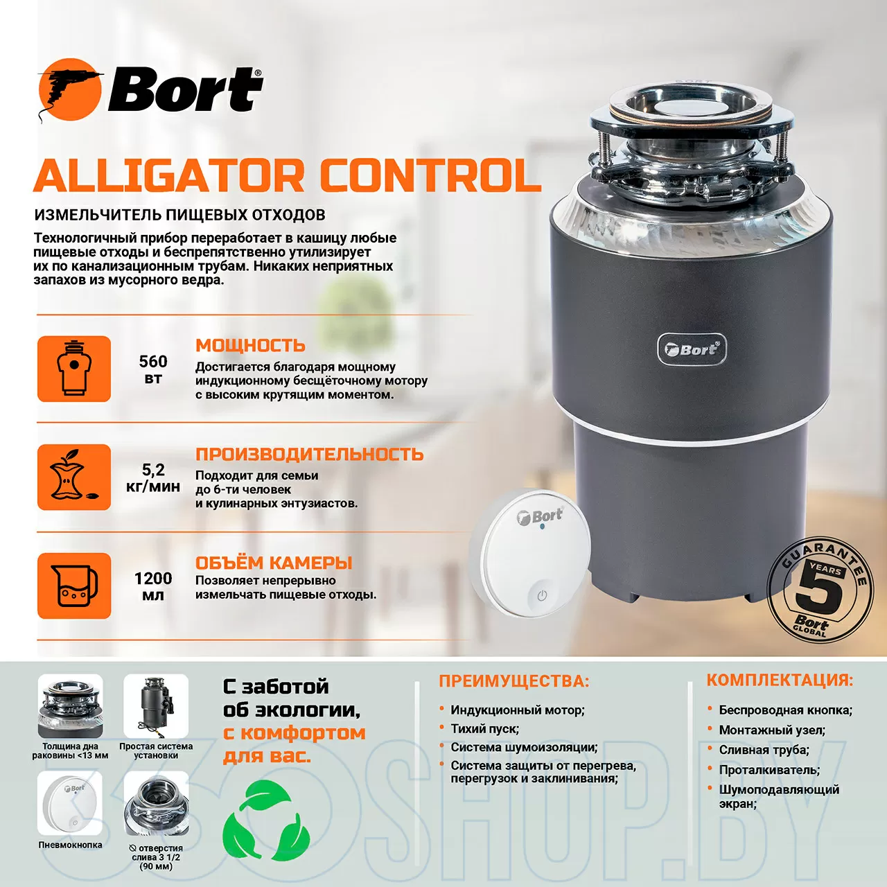 Измельчитель пищевых отходов Bort Alligator Control (93417944)
