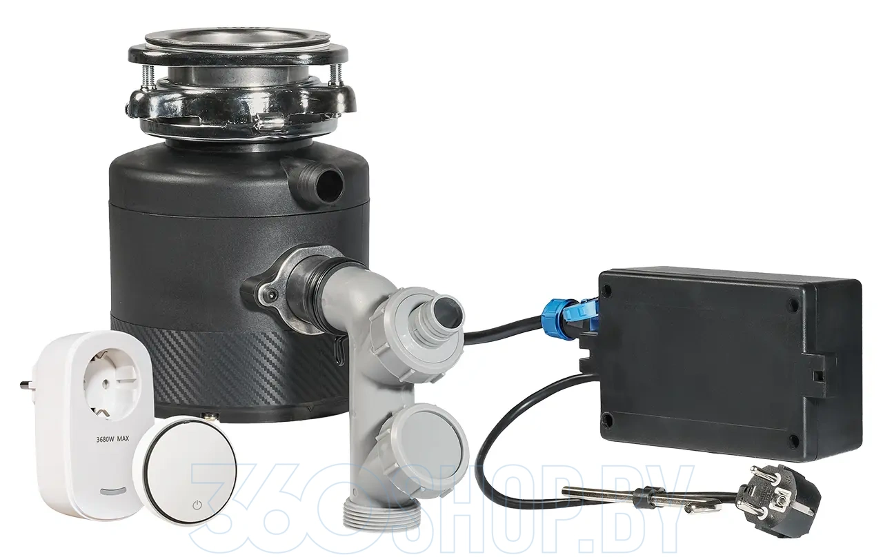 Модель оснащена мощным мотором с мощностью около 750–800 Вт и скоростью вращения ротора порядка ~4000 об/мин, что обеспечивает уверенное измельчение остатков пищи, включая небольшие косточки, овощи и фруктовые остатки. Рабочая камера объёмом примерно 1,2–1,5 л позволяет обрабатывать значительные порции отходов без частой очистки. Конструкция обеспечивает низкий уровень шума и защиту от перегрузок, а стандартный диаметр подключения ~3 ½″ (≈ 90 мм) делает установку совместимой с большинством кухонных моек.