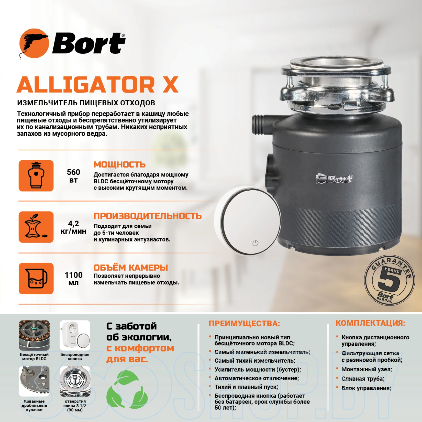 Измельчитель пищевых отходов Bort Alligator X (93414707): мощный помощник для кухни