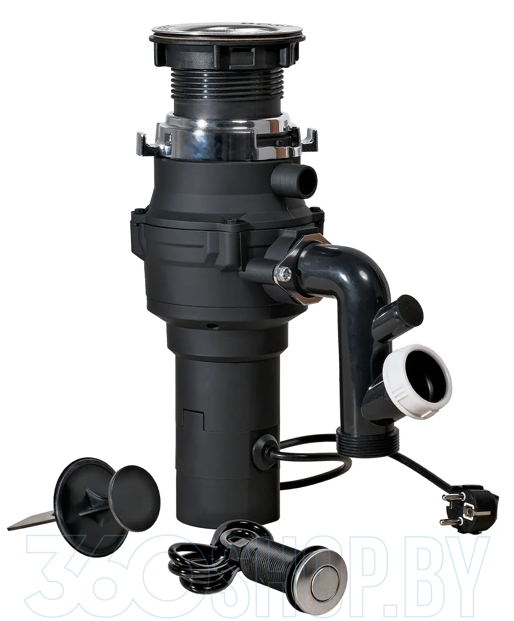 Устройство оснащено мотором мощностью около 375 Вт и развивает скорость вращения около 3000 об/мин, что позволяет эффективно измельчать остатки пищи до мельчайших частиц. Объём камеры для переработки составляет примерно 860 мл, а три ступени измельчения обеспечивают качественную переработку различных типов отходов. Измельчающий элемент выполнен из нержавеющей стали, что увеличивает срок службы и устойчивость к коррозии. Диаметр сливного отверстия составляет стандартные 3 1/2″ (~90 мм), а удлинённый фланец позволяет установить устройство под раковину толщиной до ~30 мм.