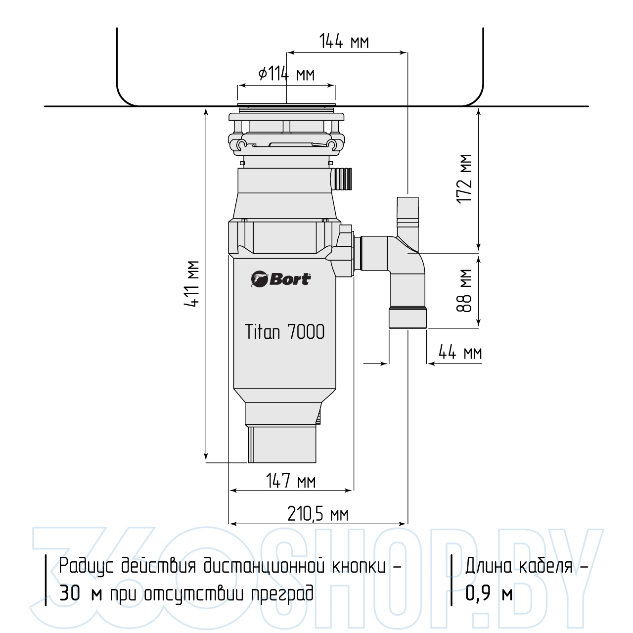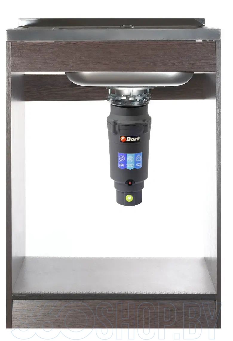 Bort Titan 7000 (93413519) устанавливается под кухонную мойку и подключается к стандартной системе канализации, не требуя сложного обслуживания. Пневматическая кнопка управления обеспечивает безопасное включение, а защита от перегрузки повышает надёжность эксплуатации. Компактные размеры корпуса позволяют установить устройство даже в небольшом кухонном шкафу, а прочная конструкция рассчитана на длительный срок службы.