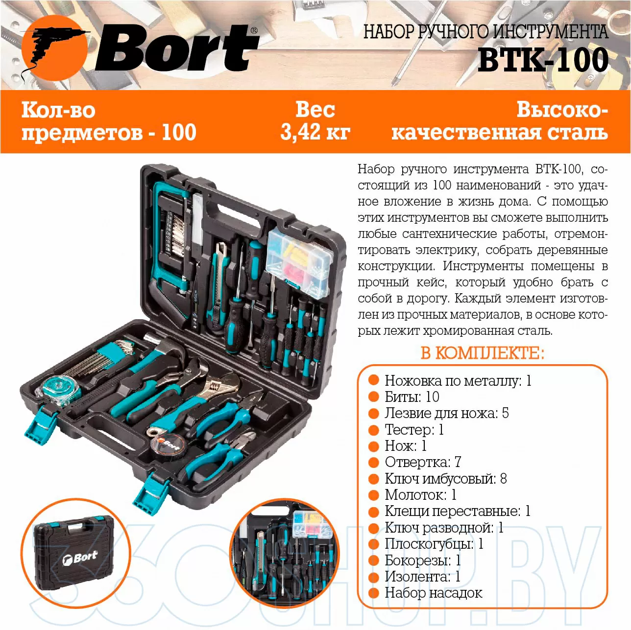 Универсальный набор инструментов Bort BTK-100 (100 предмета) (93723521)