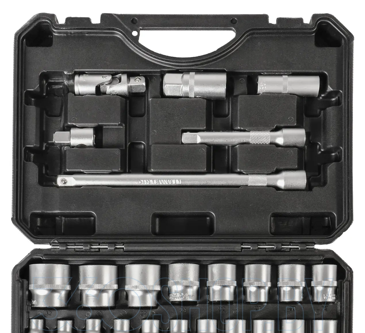 Набор включает 33 предмета, среди которых основные типы бит (крестовые PH/PZ, плоские SL и шестигранные HEX), держатели и адаптеры для работы с винтами, шурупами и крепёжными элементами различных форматов. Все компоненты изготовлены из прочной хромованадиевой стали Cr-V, устойчивой к износу и обеспечивающей длительный срок эксплуатации. Компактный формат набора делает его удобным для хранения в ящике инструмента или переноски в автомобиле.