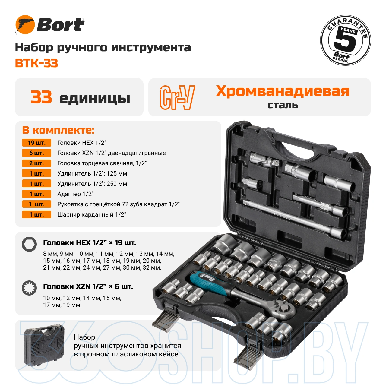 Купить Bort BTK-33 (33 предмета) (93418514) можно также в Гомеле, Гродно, Бресте, Витебске, Могилёве с доставкой курьером по Беларуси, причем по сниженной цене — идеальный момент для выгодной покупки!