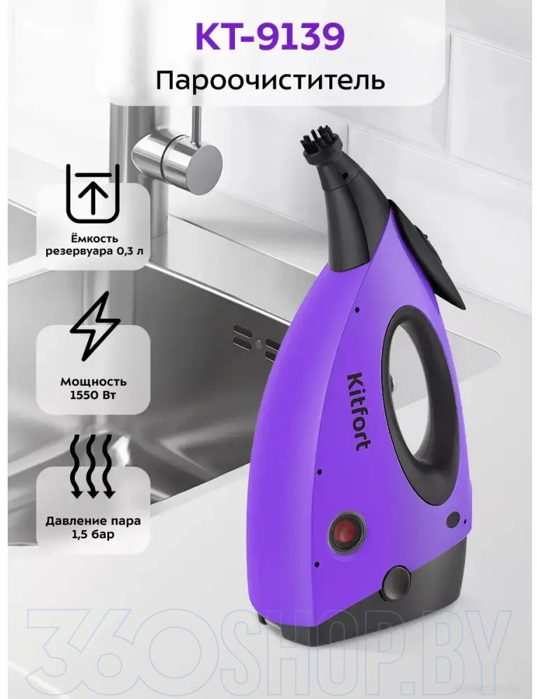 Пароочиститель Kitfort KT-9139 — это универсальное устройство для быстрой и эффективной уборки дома, которое помогает устранять стойкие загрязнения, жир, налёт и бактерии с различных поверхностей без использования химических средств. Он сочетает высокую мощность, удобство управления и широкий набор насадок, что делает его отличным помощником для кухни, ванной, окон и мягкой мебели. Купить пароочиститель Kitfort KT-9139 в Минске недорого можно в нашем интернет-магазине — с официальной гарантией и доставкой по всей Беларуси.