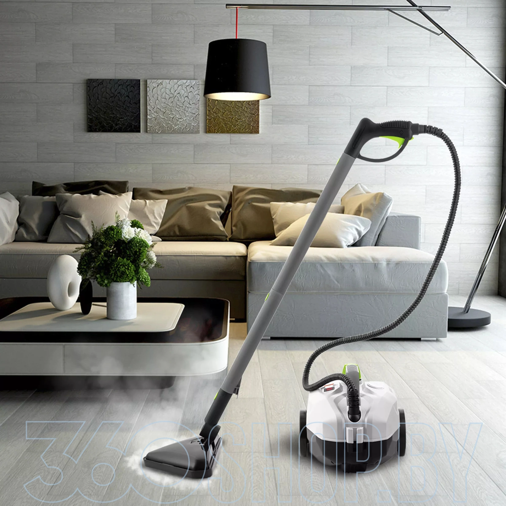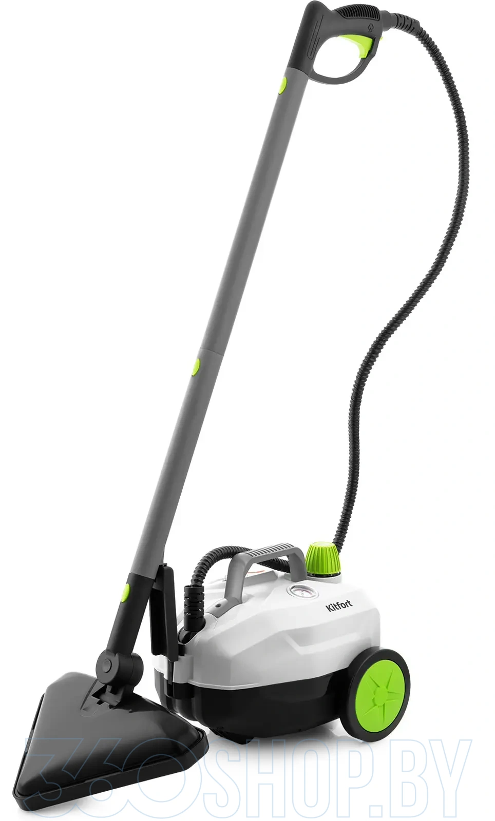 Модель оснащена двигателем мощностью около 1500 Вт, что обеспечивает быстрый выход в рабочий режим и подачу пара под давлением до примерно 3–4 бар. Объём резервуара для воды составляет около 0,45–0,5 л, что позволяет обеспечить 10–15 минут непрерывной работы без необходимости долива. Температура пара достигает примерно 98 °C, что помогает эффективно удалять стойкие загрязнения и частично дезинфицировать поверхности. Устройство также оснащено регулируемым паровым клапаном для адаптации интенсивности подачи в зависимости от типа поверхности и уровня загрязнений.