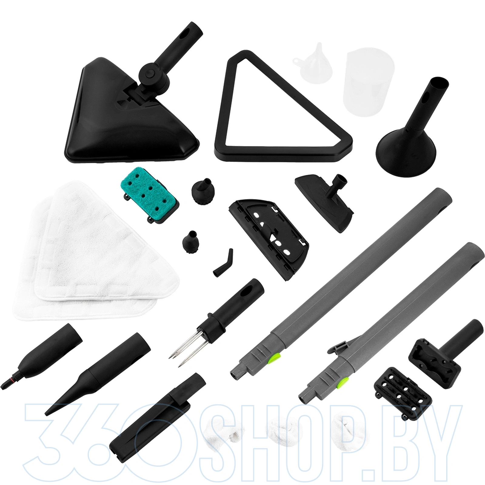 - Комплект насадок — универсальность для уборки кухни, ванной и пола.