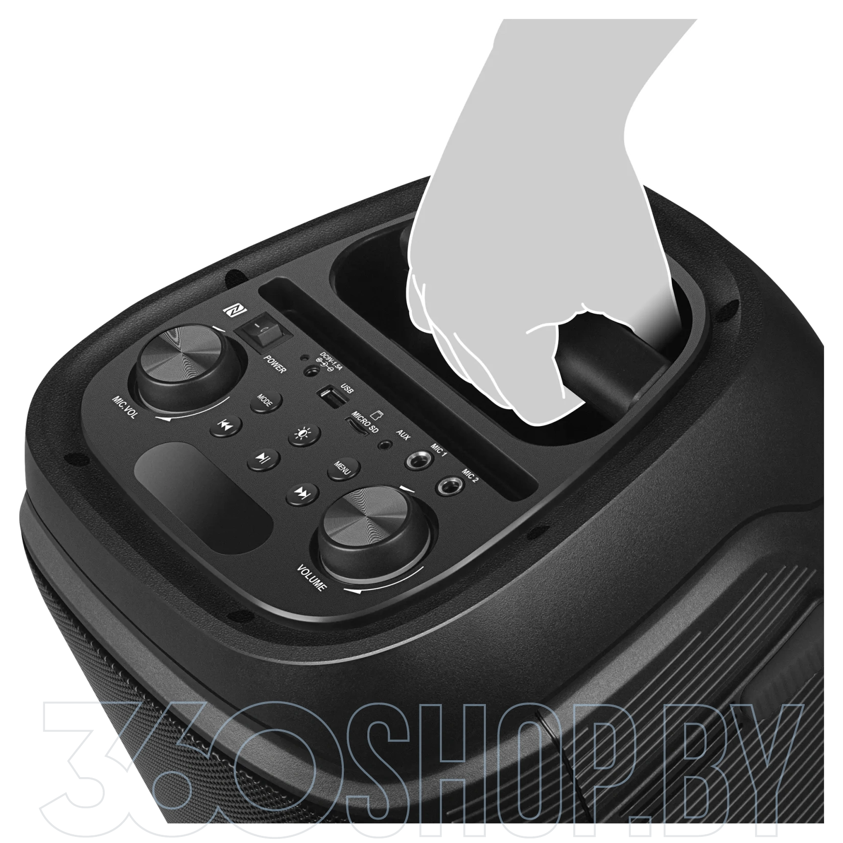 караоке, встроенный эквалайзер, радио, подставка для смартфона |