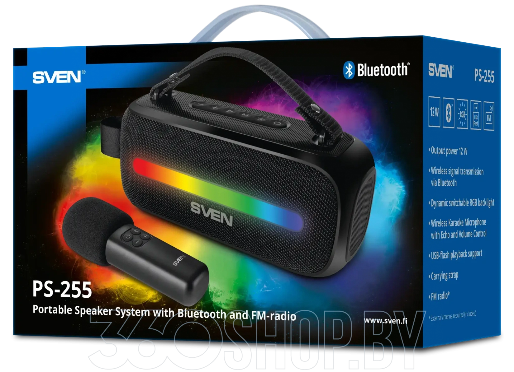 Портативная колонка SVEN PS-255 — удобное решение для прослушивания музыки дома, на природе или во время поездок. Устройство сочетает беспроводное подключение, встроенную подсветку и возможность караоке, что делает его отличным выбором для отдыха и встреч с друзьями. Купить портативную колонку SVEN PS-255 в Минске недорого можно в нашем интернет-магазине — с официальной гарантией и доставкой по всей Беларуси.
