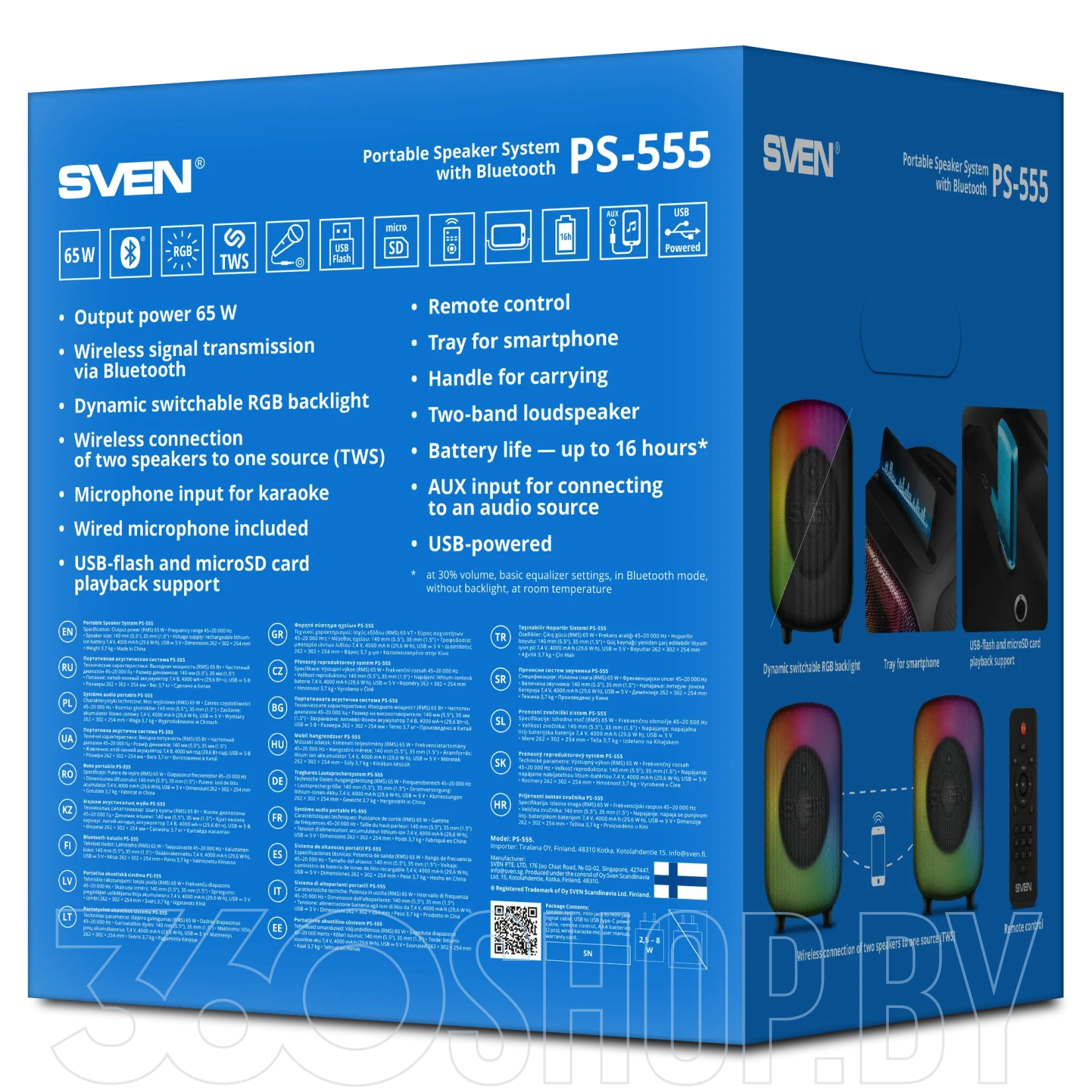 Купить SVEN PS-555 можно также в Гомеле, Гродно, Бресте, Витебске и Могилёве с доставкой курьером по Беларуси, причем по сниженной цене — идеальный момент для выгодной покупки!