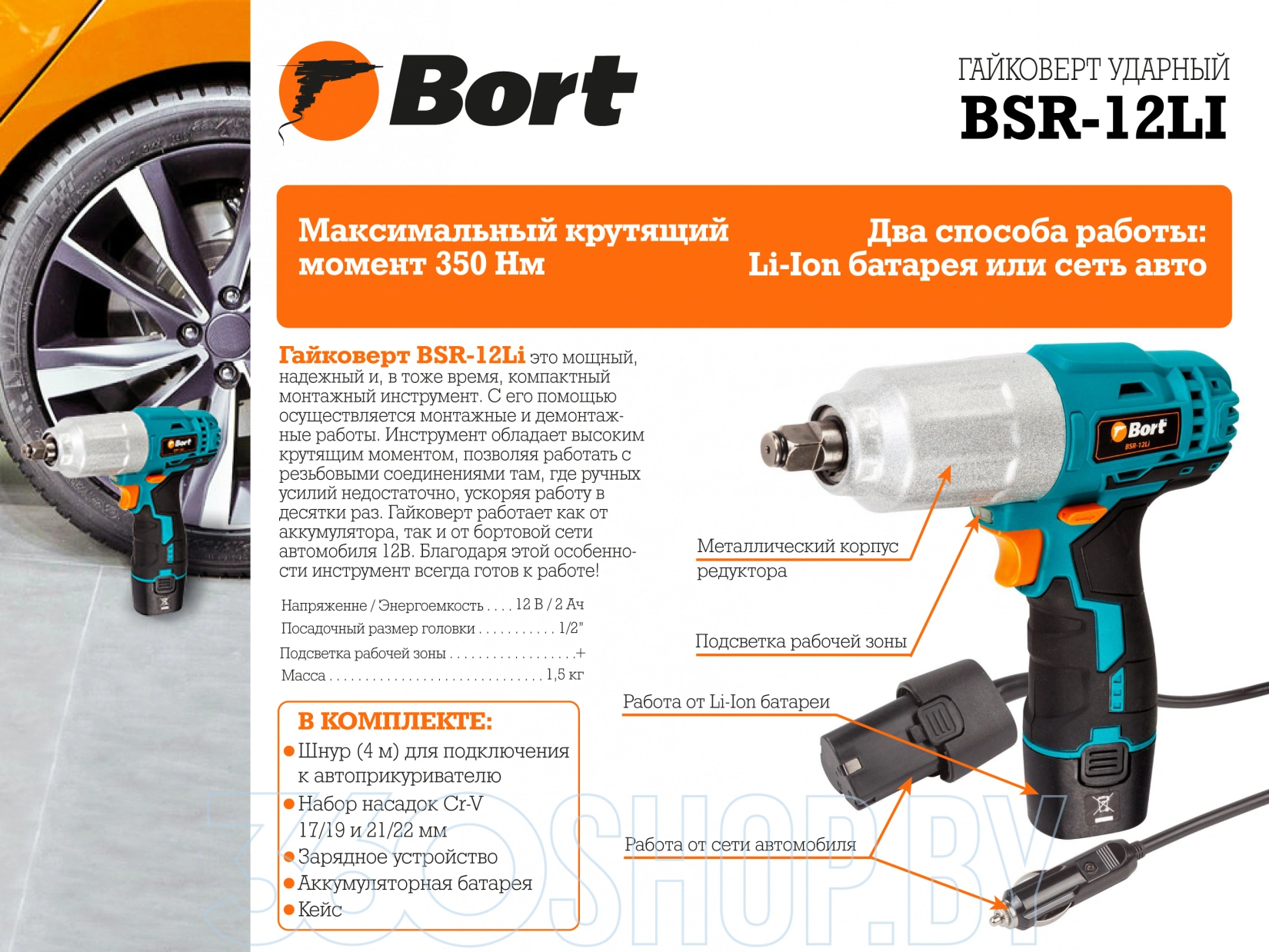 Гайковерт проводной автомобильный Bort BSR-12Li (с 1-им АКБ, кейс) (93720636)