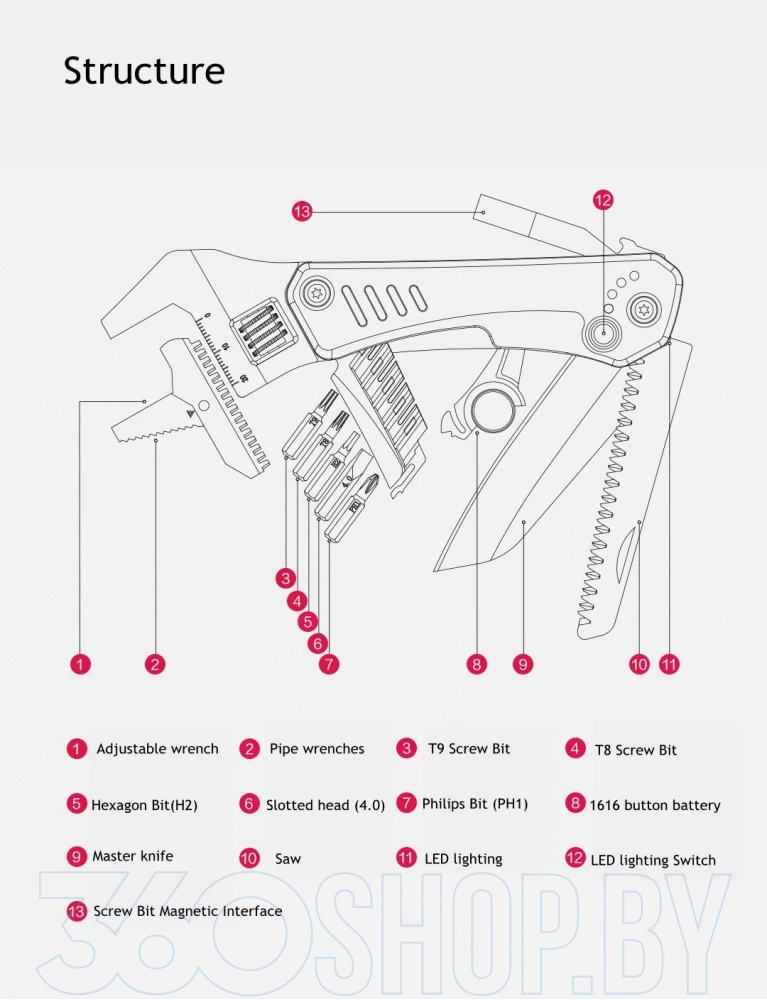 Мультитул MarsWorker Multifunction Wrench (MSHW001)
