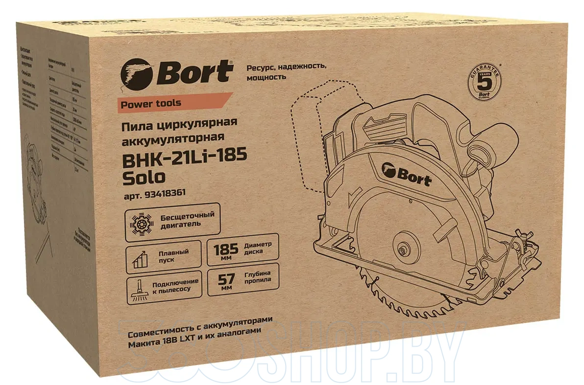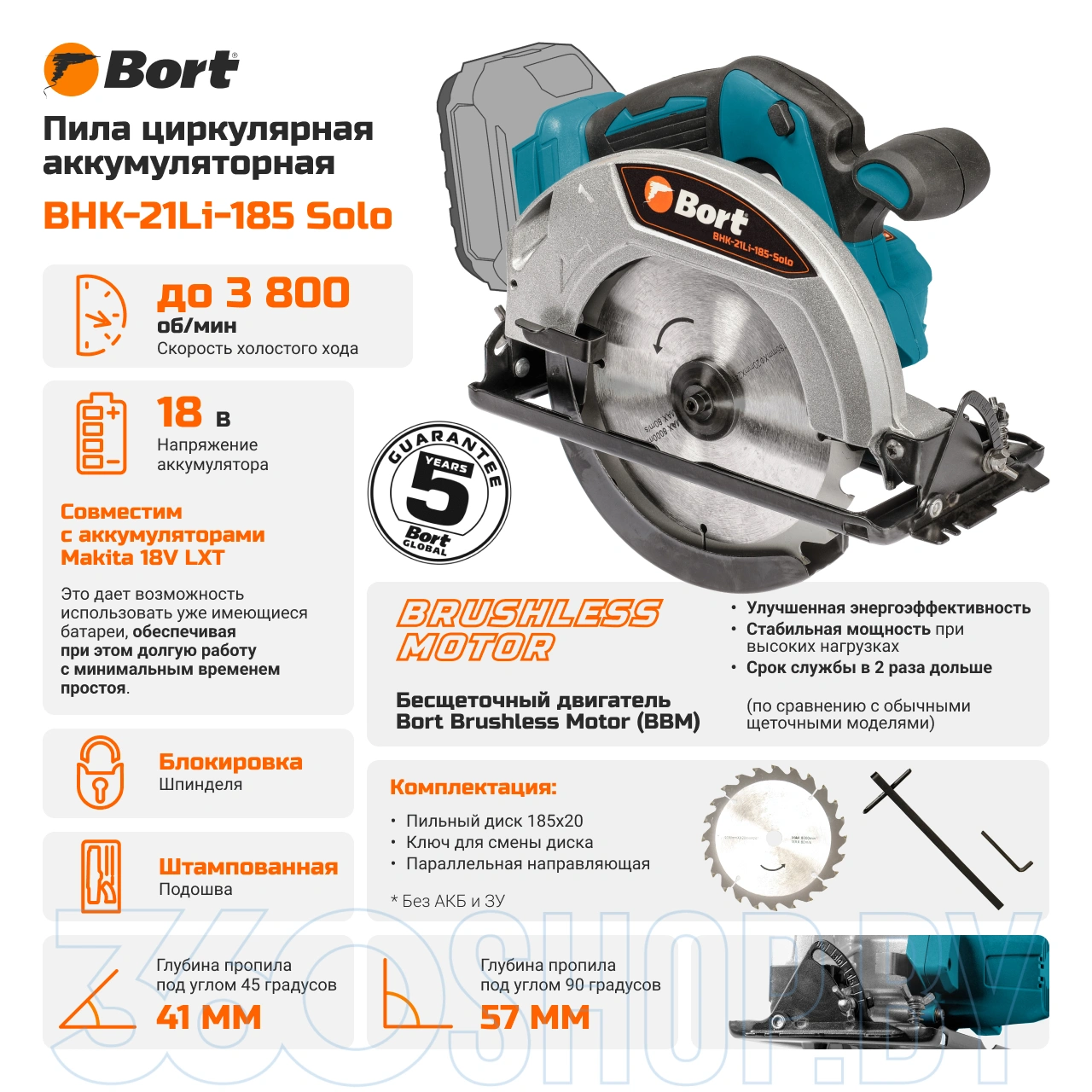 Циркулярная пила аккумуляторная Bort BHK-21Li-185 Solo (без АКБ) (93418361)